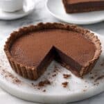 - Assemble and Chill: Remove the pastry case from the tin and place on a serving plate. Spoon the filling into the pastry case and spread evenly. Chill in the refrigerator for about 3 hours or preferably overnight to set. Before serving, sift extra cocoa powder over the tart and optionally serve with a dollop of half-fat crème fraîche. Note: Due to raw egg whites, this tart is not recommended for pregnant women, elderly, babies, toddlers, or those with weakened immune systems.