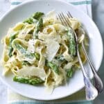 Keywords: asparagus pasta, creamy pasta, tagliatelle recipe, vegetarian pasta, spring vegetable pasta, parmesan cream sauce