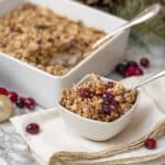 Keywords: baked oatmeal, apple cranberry oatmeal, healthy breakfast, baked oats, fall breakfast recipe, fruit oatmeal, nut topping, cinnamon baked oatmeal