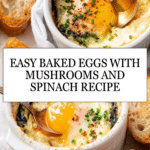 Baked Eggs with Mushrooms, also known as Shirred Eggs, is a comforting and elegant dish perfect for breakfast or brunch. This recipe combines tender sautéed mushrooms, fresh spinach, and creamy baked eggs topped with parmesan for a rich, satisfying meal.