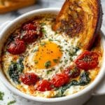 This Baked Feta Eggs Breakfast is a delicious and easy-to-make recipe featuring creamy Greek feta baked with cherry tomatoes, red onion, garlic, and fresh basil, topped with perfectly baked eggs. It’s a savory and satisfying morning meal, great for brunch or a cozy breakfast, served best with crusty bread for dipping.