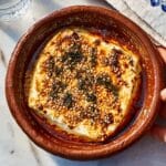 This baked feta with sesame and honey recipe is a delightful combination of creamy, salty feta cheese crusted with nutty toasted sesame seeds and drizzled with sweet honey. Baked to perfection with fresh oregano and olive oil, it makes an elegant and easy appetizer served warm with pita bread for dipping.
