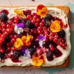 - Finish with Berries and Flowers: Spoon the reserved mixed berries over the top and decorate with edible flowers if desired, adding a colorful and fresh finishing touch.