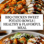 These BBQ Chicken Sweet Potato Bowls are a healthy, flavorful meal featuring tender, smoky BBQ chicken served over baked sweet potatoes and topped with fresh, vibrant ingredients like avocado, black beans, corn, and cilantro. Perfect for a nutritious weeknight dinner that combines protein, veggies, and wholesome carbohydrates in one delicious bowl.