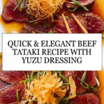 Beef Tataki is a Japanese-inspired dish featuring lightly seared, thinly sliced beef served with a tangy yuzu dressing and crispy toppings. It’s elegant yet simple to prepare, perfect for impressing guests or enjoying a flavorful weeknight treat.