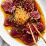 Beef Tataki is a Japanese-inspired dish featuring lightly seared, thinly sliced beef served with a tangy yuzu dressing and crispy toppings. It’s elegant yet simple to prepare, perfect for impressing guests or enjoying a flavorful weeknight treat.