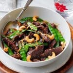 This Beef with Mangetout & Cashews stir-fry is a deliciously quick and flavorful dish perfect for busy weeknights. Tender rump steak meets crisp mangetout and crunchy toasted cashews, all coated in a glossy, savory sauce. It’s a simple yet impressive meal that pairs beautifully with rice or noodles.