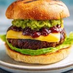 - Top the burgers with melty vegan or non-vegan cheese for extra richness; melt under a grill or barbecue lid just before serving.