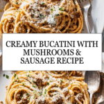 Keywords: bucatini, mushrooms, sausage, creamy pasta, Italian recipe, porcini mushrooms, stovetop pasta, comfort food