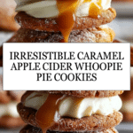 These Caramel Apple Cider Whoopie Pie Cookies are a delightful fall treat that combine warm spices, tangy apple cider, and rich salted caramel. Soft and cakey cookies sandwich a luscious caramel filling, perfect for cozy afternoons or festive gatherings.