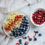 - Add Toppings and Serve: The next day, remove the oats from the refrigerator and stir once or twice. Top with fresh blueberries, goji berries, pomegranate seeds, granola, and unsweetened shredded coconut according to your taste preferences. Enjoy your wholesome and flavorful breakfast!