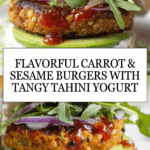 These Carrot & Sesame Burgers are a flavorful and nutritious vegetarian alternative to traditional burgers, combining grated and cooked carrots with chickpeas, tahini, cumin, and sesame seeds. Served with a tangy lemony sesame yogurt and fresh toppings like avocado, red onion, and rocket, they’re perfect for BBQs or quick weeknight dinners.