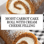Keywords: carrot cake roll, cream cheese filling, spiced carrot cake, roll cake, dessert roll, holiday dessert, carrot dessert