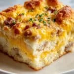 This Cheddar Bay Biscuit Egg Breakfast Casserole Delight combines the classic savory flavors of cheddar biscuits with a hearty egg and sausage bake. It’s a perfect make-ahead dish for a weekend brunch or a comforting breakfast any day of the week.