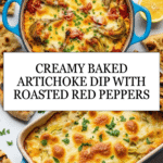 This creamy artichoke dip is a crowd-pleaser that’s perfect for any gathering. Packed with parmesan, garlic, and roasted red peppers, it’s rich, flavorful, and easy to prepare. Serve it warm with pita, crackers, or baguette slices for a tasty appetizer.