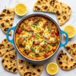 - Finish and serve: Remove from the oven and immediately sprinkle extra parmesan and chopped fresh chives over the top. Serve warm with pita bread, crackers, or baguette slices for dipping.