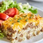 Keywords: Cheesy hash brown casserole, ground beef casserole, baked hash browns, comfort food casserole, easy dinner casserole