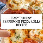 Cheesy Pepperoni Pizza Rolls are a delicious and fun twist on classic pizza, perfect for snacks or a casual meal. These bite-sized rolls are stuffed with gooey cheese and savory pepperoni, baked until golden and served with marinara sauce for dipping.