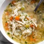 A comforting and hearty Chicken and Rice Soup made with tender chicken thighs, fresh vegetables, and aromatic herbs simmered in a flavorful broth. This easy-to-make soup is perfect for a nourishing meal any day of the week.