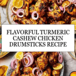 Deliciously spiced chicken drumsticks marinated in a creamy cashew, turmeric, and yogurt blend, slow-roasted and finished under a hot grill for a crispy, golden finish. This Indian-inspired kalmi kebab recipe offers tender, flavorful chicken with aromatic spices like garam masala, cumin, and Kashmiri chili powder, perfect for an impressive yet easy-to-make dinner.