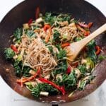 - Combine Ingredients: Return the cooked chicken and kale to the pan with the vegetables. Add the cooked soba noodles and toss to combine evenly.