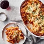 - Bake the pasta: Place the dish in the preheated oven and bake for 20 minutes or until the cheese topping is golden brown, bubbling, and the bake is heated through. Remove from the oven and serve hot.