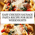 This chicken sausage pasta is a comforting and flavorful dish that comes together quickly on busy weeknights. Packed with savory sausage, tender spinach, and a rich tomato sauce, it’s a satisfying meal the whole family will enjoy.