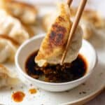 Keywords: Chinese dumplings,potstickers,pan-fried dumplings,shiitake pork dumplings,fatty pork mince dumplings,Asian appetizer