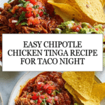 Chipotle chicken tinga is a smoky, spicy Mexican-inspired dish that’s easy to prepare and packed with flavor. Perfect for a casual dinner or a festive gathering, it combines tender shredded chicken with a rich chipotle tomato sauce and fresh salsa.