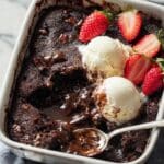 - Rest and Serve: Remove the pudding from the oven and allow it to stand for just a few minutes. Serve immediately while warm to enjoy the gooey chocolate sauce beneath the cake. Great served with cream or ice cream.