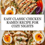 Classic chicken ramen is a comforting and flavorful dish that’s perfect for a satisfying meal. Tender chicken, fresh vegetables, and a rich broth come together with soft noodles and a perfectly cooked egg for a delicious bowl of warmth.