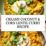 A creamy and vibrant Coconut & Corn Curry featuring red lentils, baby corn, and fragrant spices. This comforting dish is perfect for a wholesome vegetarian meal, combining the richness of coconut yogurt with the subtle heat of ginger and curry powder.