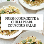 This vibrant courgette, chilli, and mint dish with pearl couscous is a delightful mix of fresh flavors and textures. It’s a light yet satisfying meal perfect for a quick lunch or a colorful side dish.