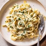 This classic Alfredo sauce recipe features a rich and creamy blend of butter, garlic, double cream, Italian herbs, and Parmesan cheese, perfectly tossed with cooked pasta for a comforting and flavorful meal. Simple to prepare on the stovetop, it combines fresh parsley for a hint of brightness and makes an ideal dish for a quick yet indulgent dinner.