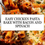 This chicken pasta bake is a comforting, hearty dish perfect for family dinners. Tender chicken, crispy bacon, and tender pasta come together in a rich tomato sauce topped with melted mozzarella and parmesan. It’s easy to prepare and delivers big flavors in every bite.