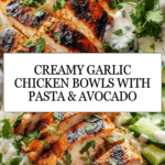 Creamy Garlic Chicken Bowls with Pasta, Quinoa, and Avocado Recipe