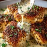 This Creamy Garlic Parmesan Chicken recipe features tender, juicy chicken breasts seared to golden perfection and smothered in a rich, velvety sauce made with garlic, heavy cream, Parmesan cheese, and Italian seasoning. Enhanced with optional white wine and red pepper flakes for depth and a hint of heat, this dish is perfect for an indulgent weeknight dinner or special occasion meal. Serve it over pasta, rice, or mashed potatoes to soak up every bit of the luscious sauce.