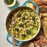 Creamy Parmesan Courgette and Butter Beans with Pistachio Pesto Recipe