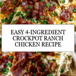 This effortless 4 Ingredient Crockpot Chicken recipe combines tender chicken breasts with creamy ranch seasoning, rich cream cheese, and crispy bacon for a flavorful and comforting slow cooker meal. Perfect for busy days, it requires minimal prep and delivers a creamy, savory dish that works well for sandwiches, salads, or served over rice.