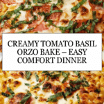 This Creamy Tomato Basil Orzo Bake is a comforting and flavorful one-pot meal featuring tender orzo pasta cooked in a savory tomato and cream sauce, enriched with melted mozzarella and Parmesan cheeses and fresh basil. Perfect for a cozy dinner, this dish combines creamy textures with fresh herbaceous notes for an inviting Mediterranean-inspired bake.