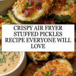 Keywords: stuffed pickles, air fryer recipes, crispy appetizers, bacon stuffed pickles, snack recipes, cream cheese stuffed pickles