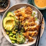 Keywords: Chicken Katsu, Crispy Chicken, Japanese Chicken Bowl, Panko Chicken, Spicy Mayo Chicken Bowl, Edamame Rice Bowl