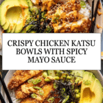 Crispy Chicken Katsu Bowls are a perfect blend of crunchy, savory chicken served over fluffy rice and fresh veggies. This dish features a flavorful, homemade sauce and a spicy mayo that brings everything together for a delicious, satisfying meal.