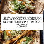 Keywords: Korean pot roast, Gochujang tacos, Slow cooker tacos, Korean fusion tacos, Spicy beef tacos, Crockpot pot roast