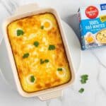 - For a heartier meal, mix in cooked sausage or ham before baking.