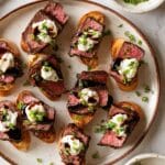 Keywords: steak crostini, horseradish sauce, Boursin cheese, appetizer, easy party snacks, steak appetizer, crostini recipe, savory bites