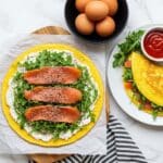 These egg wraps with smoked salmon make for a delicious and elegant breakfast or light lunch. Thin, tender egg layers wrapped around creamy cheese, smoky fish, and fresh greens create a satisfying blend of flavors and textures.