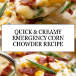 This Emergency Corn Chowder is a quick and comforting soup that’s perfect when you need something warm and satisfying with minimal ingredients. Creamy, slightly sweet, and hearty from the potatoes and bacon, it’s a go-to recipe for busy days or unexpected hunger.