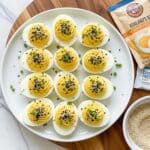 - Garnish: Top each deviled egg with fresh chives for a pop of color and flavor, if using.