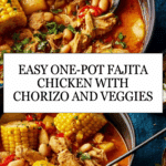 This one-pot fajita chicken recipe combines smoky chorizo, tender chicken thighs, and colorful vegetables in a rich, spiced sauce. It’s a hearty and flavorful meal that’s easy to prepare and perfect for a satisfying weeknight dinner.